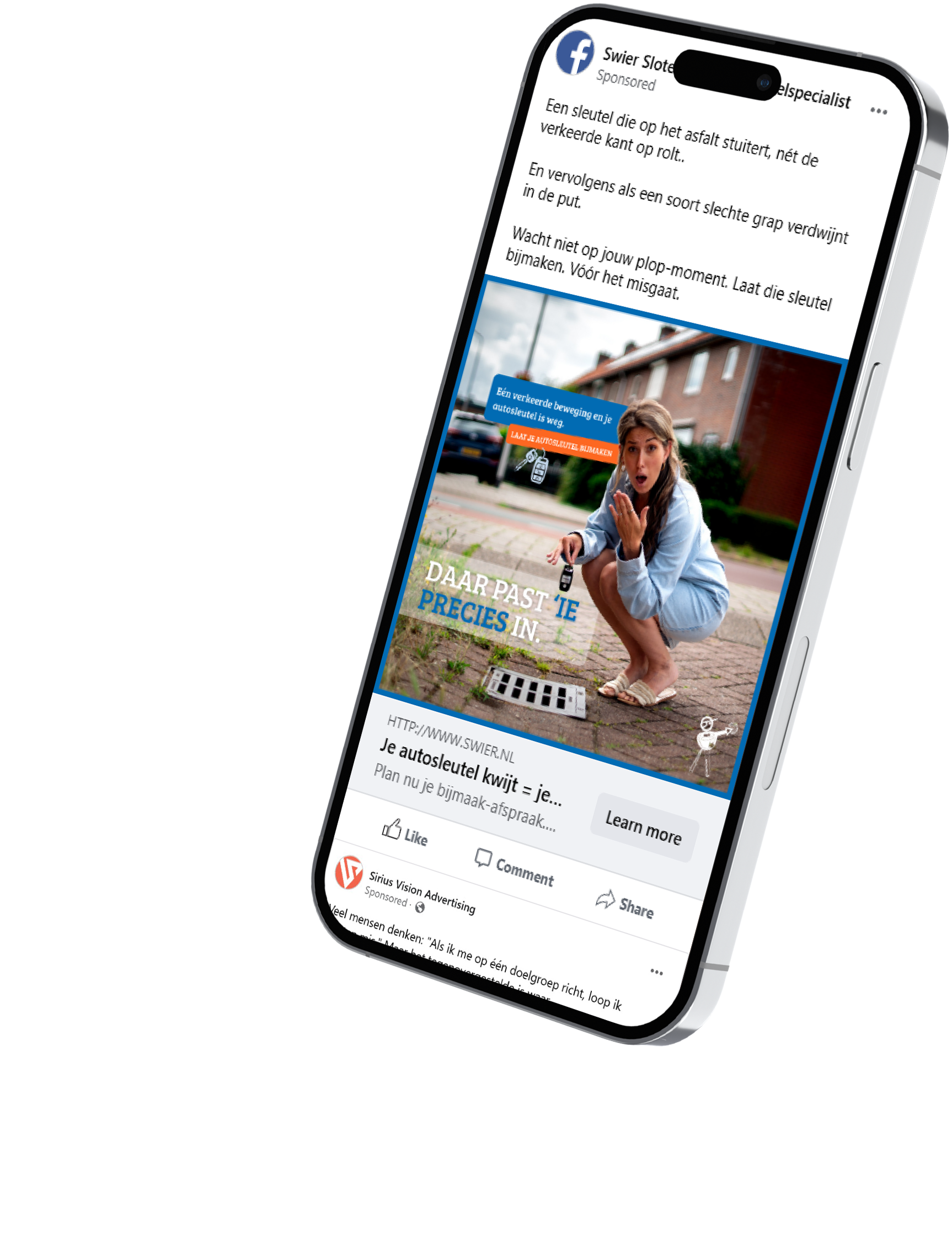 Sirius Vision Advertising ontwikkelde een scherpe strategie gericht op één doel: meer klanten voor de autosleutelservice. We startten met een heldere positionering van de dienst en werkten deze uit tot een complete campagneset met heldere boodschap, visueel onderscheid en een directe route naar conversie.
