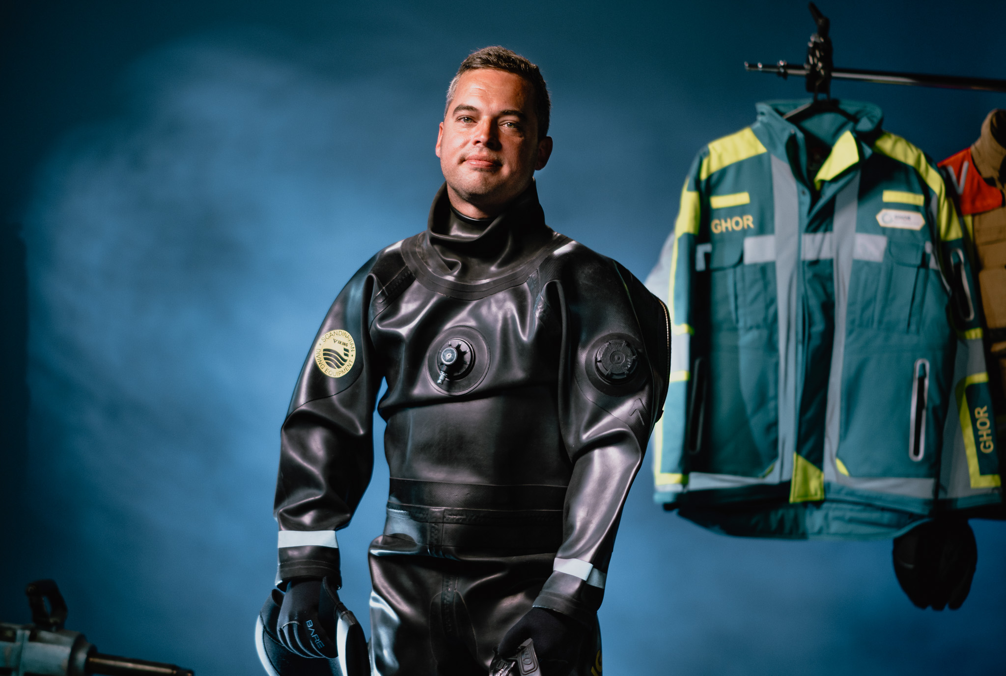 Aanvullend portretteerden we medewerkers in een minimalistische blauwe setting. Los van hun werkomgeving, krachtig en menselijk in beeld. De combinatie van realistische werksituaties en sterke portretten gaf het concept visuele diepte en maakte medewerkers zichtbaar als dragers van veiligheid.