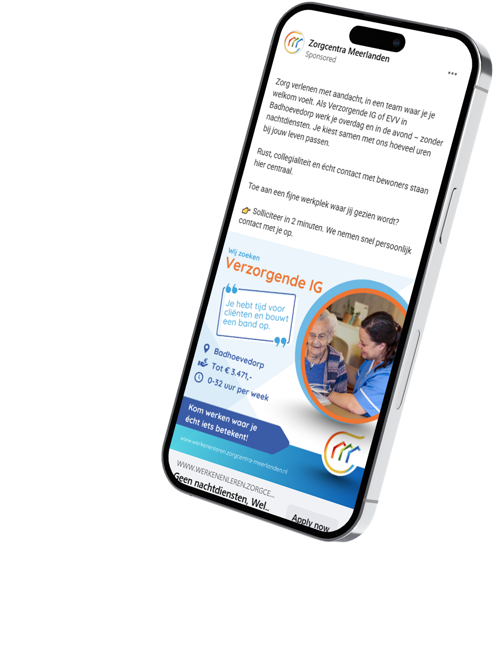 Het contact met Zorgcentra Meerlanden was gedurende het hele traject prettig en constructief. We hebben samen gekeken naar wat er nodig was, welke doelgroep we wilden bereiken en hoe we de campagne het beste konden opbouwen. Daardoor ontstond een aanpak die echt aansloot op de praktijk en de wensen vanuit de organisatie.